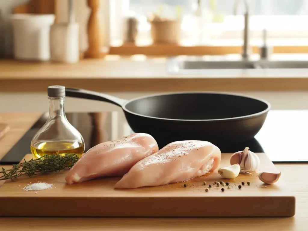 - Sear chicken until golden (4-5 minutes per side)